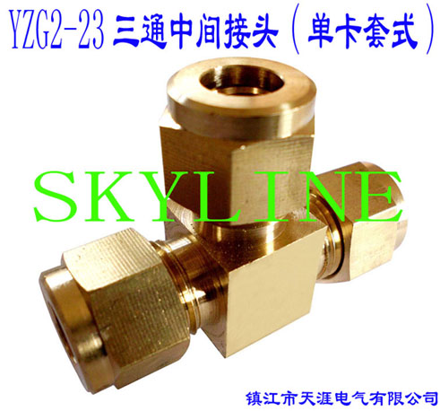 YZG2-23三通中間接頭(單卡套式) (銅管、尼龍管用)T-pipe Intermediate Connector